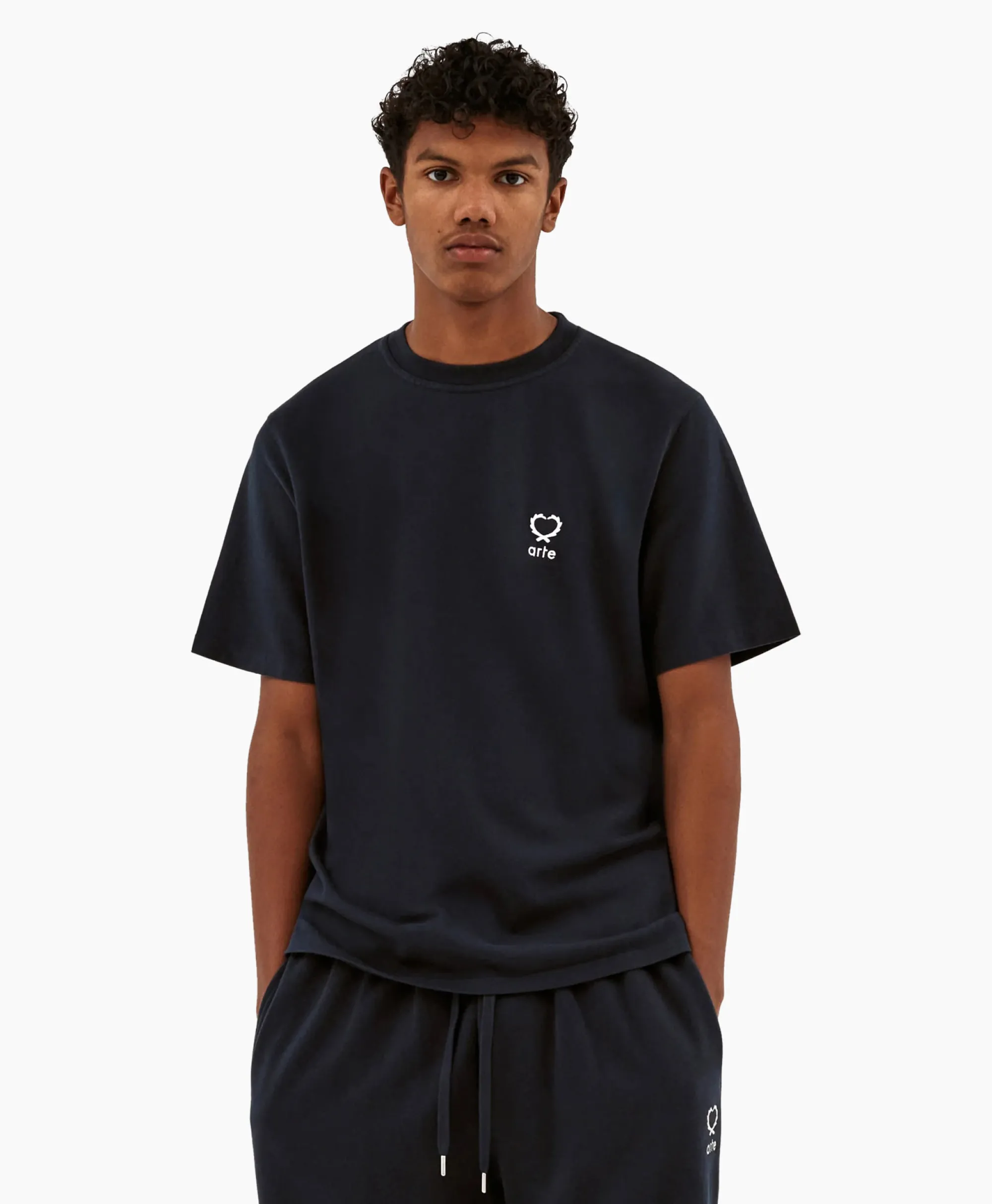 Arte Antwerp T-Shirt Korte Mouw Hearts Leaves Arte Logo Chest Donker Blauw*Heren T-Shirts